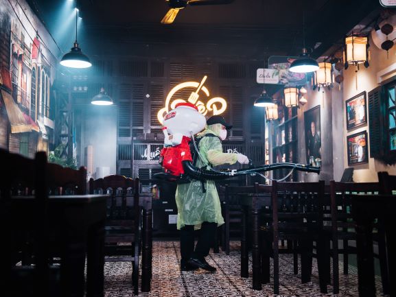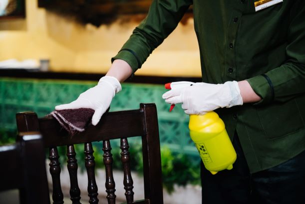 5️⃣Nhân viên nhà hàng sẽ làm sạch và khử trùng toàn bộ bàn ghế trước khi mời khách hàng ngồi