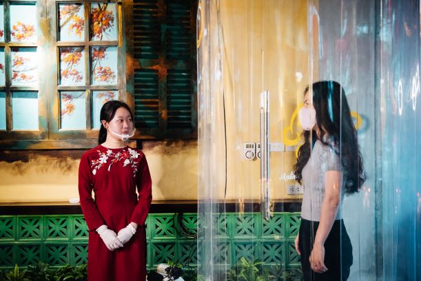4️⃣Ngay khi đi qua cửa, quý khách hàng sẽ được đi qua 1 phòng khử khuẩn toàn thân.