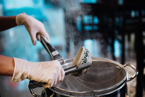 6️⃣Cuối cùng là tiệt trùng bằng nước muối nóng toàn bộ bát, thìa đĩa, đũa được sử dụng trong nhà hàng.