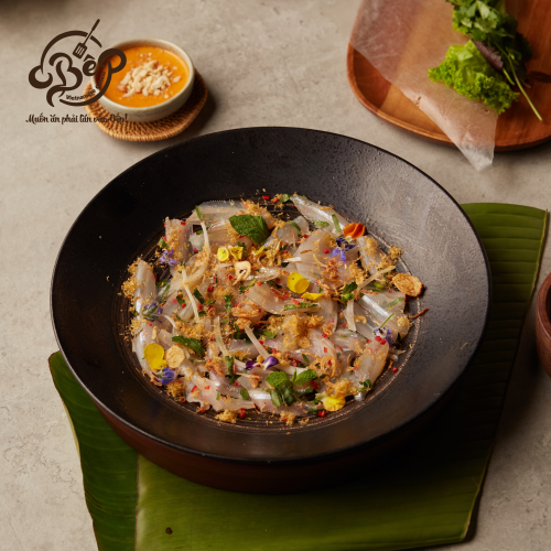 Về với Bếp Quán, điểm đặc trưng nhất của gỏi cá mai là thứ nước sốt thần thánh đã được chế biến và thêm vào một loại nguyên liệu rất Bắc Bộ. Chỉ cần thử một miếng là nhận ra ngay sự khác biệt của loại gia vị ấy.
