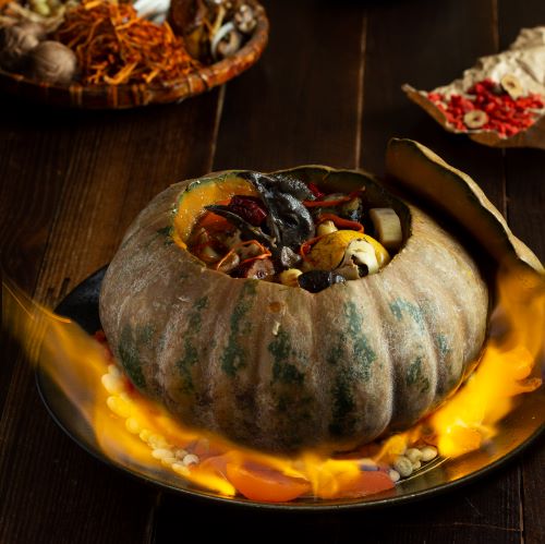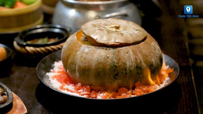 🔥Kỳ công, đó là hơn 10 loại gia vị trong nước tiềm, được phối kết hợp thêm óc heo, trứng lộn, ... và tiềm trong bí đỏ nguyên quả, để vị ngọt của gia vị, của bí đỏ và vị béo của thực phẩm hòa quyện tuyệt vời với nhau.