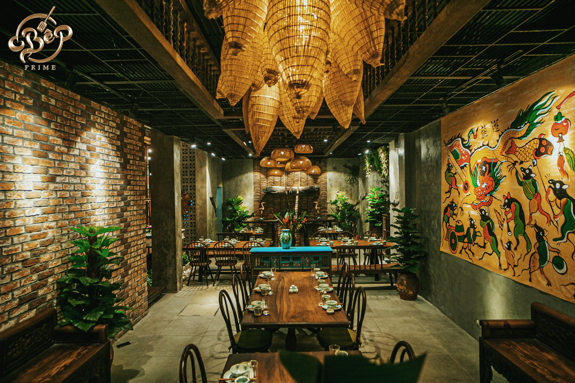 Nằm trên con phố mang đậm dấu ấn Hà Nội. Với những bộ bàn ghế gỗ mộc mạc, từng bức tranh Đông Hồ kể chuyện ngày xưa cùng những vật dụng quen thuộc như thúng tre, đèn lồng... Bếp Prime cùng mang đến cảm giác gần gũi và bình yên, như một “lát cắt” của đời sống miền Bắc thuở nào.